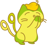 ピーナッツのカラをヘルメットとして頭の上にのせて、みんなの安全を願ってるニャ